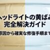 この記事では、ヘッドライトの黄ばみに対して家庭用洗剤などの日用品を使うことの本当の効果と、車検にも影響する劣化のメカニズムについて、私の見解を交えながら詳しく解説していきます。